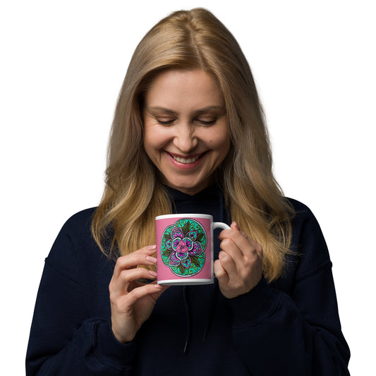 Bloom in Balance Swirling Flower Mandala Glossy White Mug